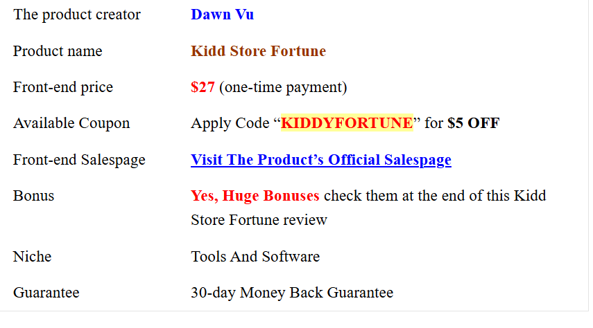 Kidd Store Fortune comes from Dawn Vu, a seasoned digital entrepreneur known for creating smart, done-for-you tools that help marketers and business owners start and scale their online ventures with ease.